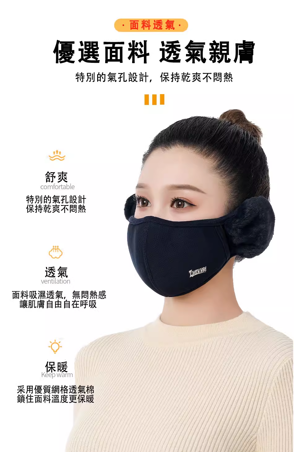 7分鐘前日本進口!台灣本地發貨!【男女同款】秋冬季高颜值纯棉加绒透气防寒防风护耳二合一面罩 - 70%的人選擇【任選五組】5入組NT$1180(均價236/組)